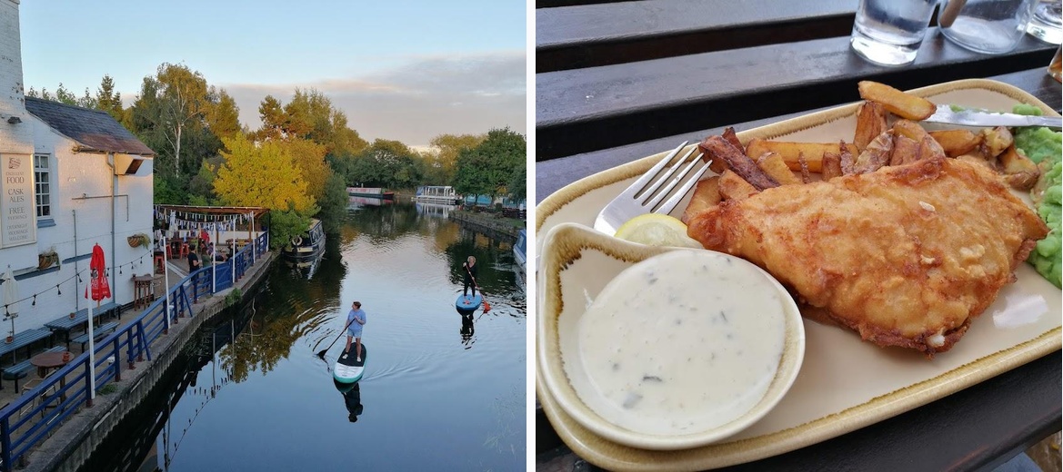 The cozy seating, combined with the picturesque canalside view, makes this pub a perfect setting for social gatherings or quiet afternoon meals.